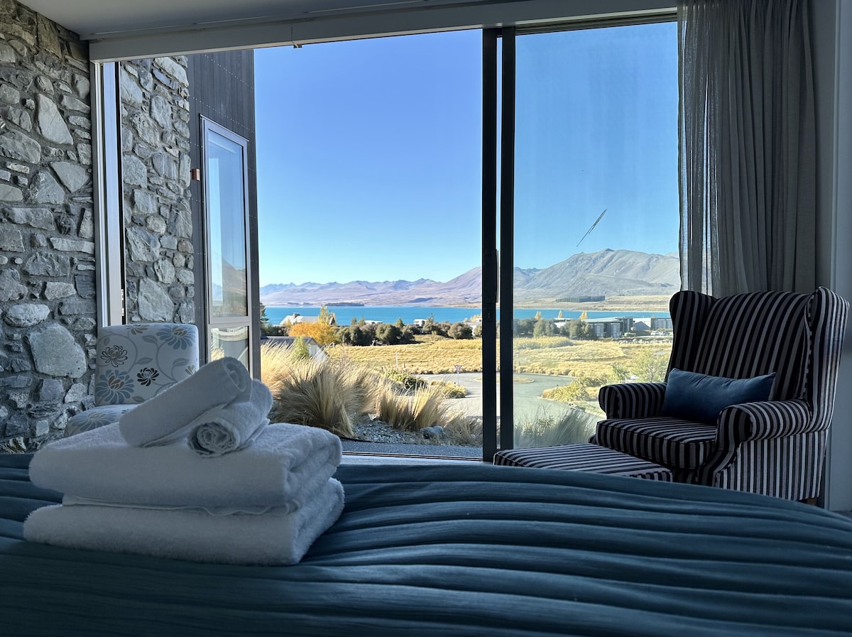 Ընդարձակ և արևոտ ՝ Luxury Lakeview Apartment - ը, որտեղից բացվում են Տեկապո լճի և շրջակա լեռների անգերազանցելի տեսարանները ։ Ոգեշնչված ճարտարապետական դիզայնը ողջունում է ձեզ հանգիստ նրբագեղության զգացումով: Շքեղություն, որը զուգակցվում է այդ հատուկ առիթի կամ մեղրամսի գաղտնիության հետ: Դիզայներական խոհանոց (Nespresso - ի հետ) և լոգասենյակ, արևոտ ապաստարան մասնավոր բակի ժամանցային տարածք, գազի հրդեհներ ներսում և դրսում, կապույտ ատամի երաժշտություն, լվացքատուն, նոթբուքի գրասեղան և նույնիսկ դահուկային հանդերձանքի չորացման սենյակ: