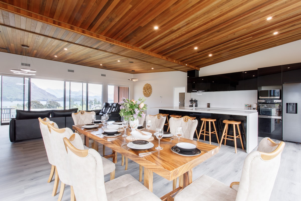Քայլ դեպի այս չքնաղ շքեղ կացարան Վանակայում, և դուք կզգաք նրա ժամանակակից դիզայնի ընդարձակ, զով նրբագեղությունը ՝ միաժամանակ շրջապատված լինելով Վանակա լճի և շրջակա լեռների համայնապատկերային տեսարաններով ։ Հանրային սնունդ, մինչև 12 - ը հարմարավետորեն, բայց հավասարապես, այն ունի հաճելի մտերմիկ տարածքներ ավելի փոքր թվի համար, եթե դա ձեզ հարմար է: IVP - ն երկար տարիներ եղել է հանգստյան տան շուկայում ՝ ունենալով 5 աստղանի հրաշալի կարծիքներ վերադարձող բազմաթիվ հյուրերի հետ ։