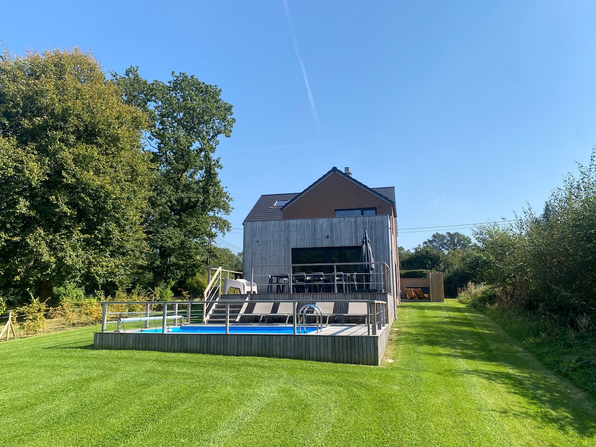 Sur les hauteurs de Spa, à 5 minutes en voiture du "Domaine de Bronromme", à 15 minutes de l'aérodrome de Spa, Suite de 30 m² pour 2 adultes et un enfant jusqu'à 10 ans. Entrée séparée du reste de la maison et boîte à clés pour un check-in indépendant. Sur demande et en supplément: Lit d'appoint pour enfant jusqu'à 10 ans ou lit pliant pour bébé. PAS DE CUISINE ÉQUIPÉE ! Micro-ondes, vaisselle et couverts, petit frigo et table d’appoint. Machine Nespresso, bouilloire. Terrasse privative.