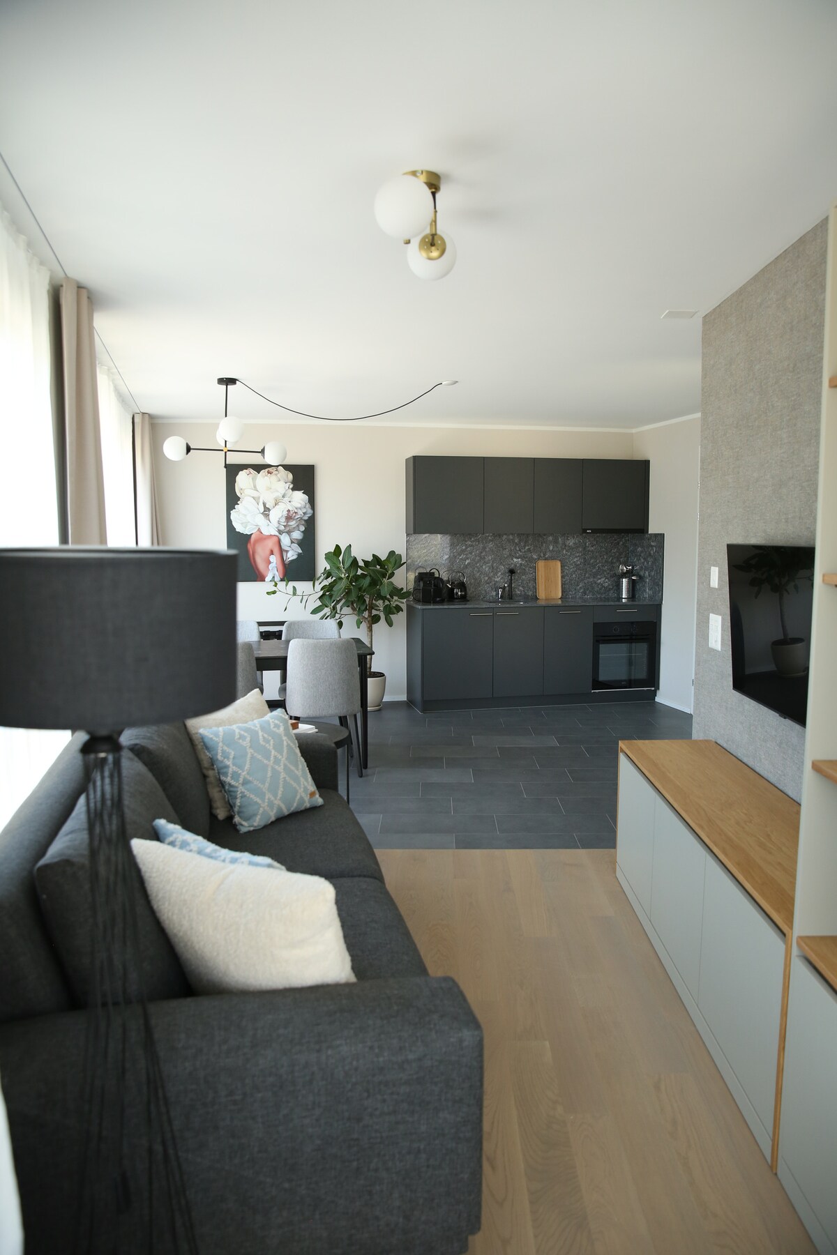 LUMEN APARTMENTS. Bright. Spacious. Modern. Fully furnished 1-room apartment for a maximum of 1 person. Extra comfortable and bright for a solo traveler. Includes all the necessary amenities to sleep comfortably and work efficiently.