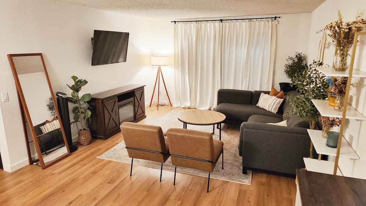 Քայլեք դեպի անզուգական ոճի և յուրահատկության աշխարհ մեր բոլորովին ՆՈՐ հյուրատանը, որն ավարտվել է 2023 թվականի գարնանը ։ Այս ժամանակակից հյուրատունը ներառում է լավագույն հարմարությունները ՝ ձեր հանգիստը հեշտ, հարմարավետ և հարմարավետ դարձնելու համար. - Ամեն անգամ մաքրվում և ախտահանվում է - Հեշտ մուտք դեպի I -5 ՝ 1 մղոնից պակաս հեռավորության վրա ։ - Մթերային խանութների, ռեստորանների, ժամանցի և առևտրի կենտրոնի մոտ - 55" 4k Roku Smart TV - Արագ Wi - Fi - Մինի տրոհված հարկաբաժին, որն ապահովում է A/C և ջեռուցում - Փայտի վառվող բուխարի - 2 - րդ մակարդակի էլեկտրամոբիլի լիցքավորիչ