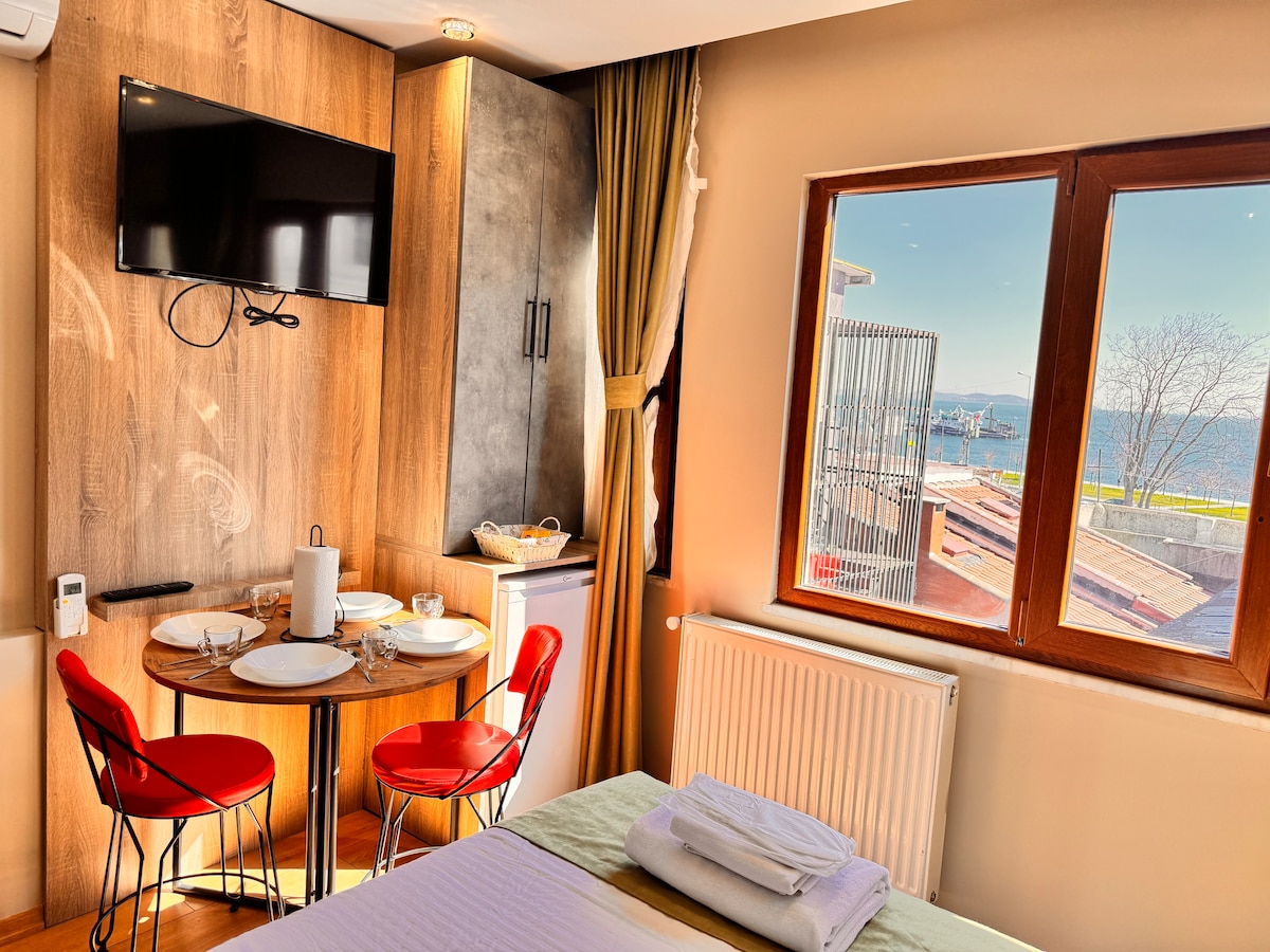Մարհաբայի, ամբողջական ծովի և Ստամբուլի տեսարանով այս յուրահատուկ բնակարանը գտնվում է պատմական տարածքի և Սուլթանահմեթի շրջանի կենտրոնում: Մեր բնակարանի յուրահատուկ տեսարանը ձեզ կուղեկցի ձեր այցի ընթացքում: Մեր շենքում կա վերելակ ։ Մեր բնակարանից կարող եք հասնել պատմական շենքեր և տրամվայի կանգառներ, ինչպիսիք են ռեստորանները, սրճարանները, շուկաները, տաքսի կայանները, դեղատները և այլն, որը ԳՏՆՎՈՒՄ է Արիկայում, ԿԱՊՈՒՅՏ ՄԶԿԻԹՈՒՄ, Սուրբ Սոֆիայում, GRAND BAZAAR - ում, BASILICA cistern - ում և շատ այլ պատմական շենքերում և ՏՐԱՄՎԱՅԻ ԿԱՆԳԱՌՆԵՐՈՒՄ, ռեստորաններում, սրճարաններում, շուկաներում, դեղատներում և այլն, մեր բնակարանից ընդամենը մի քանի րոպե հեռավորության վրա:
