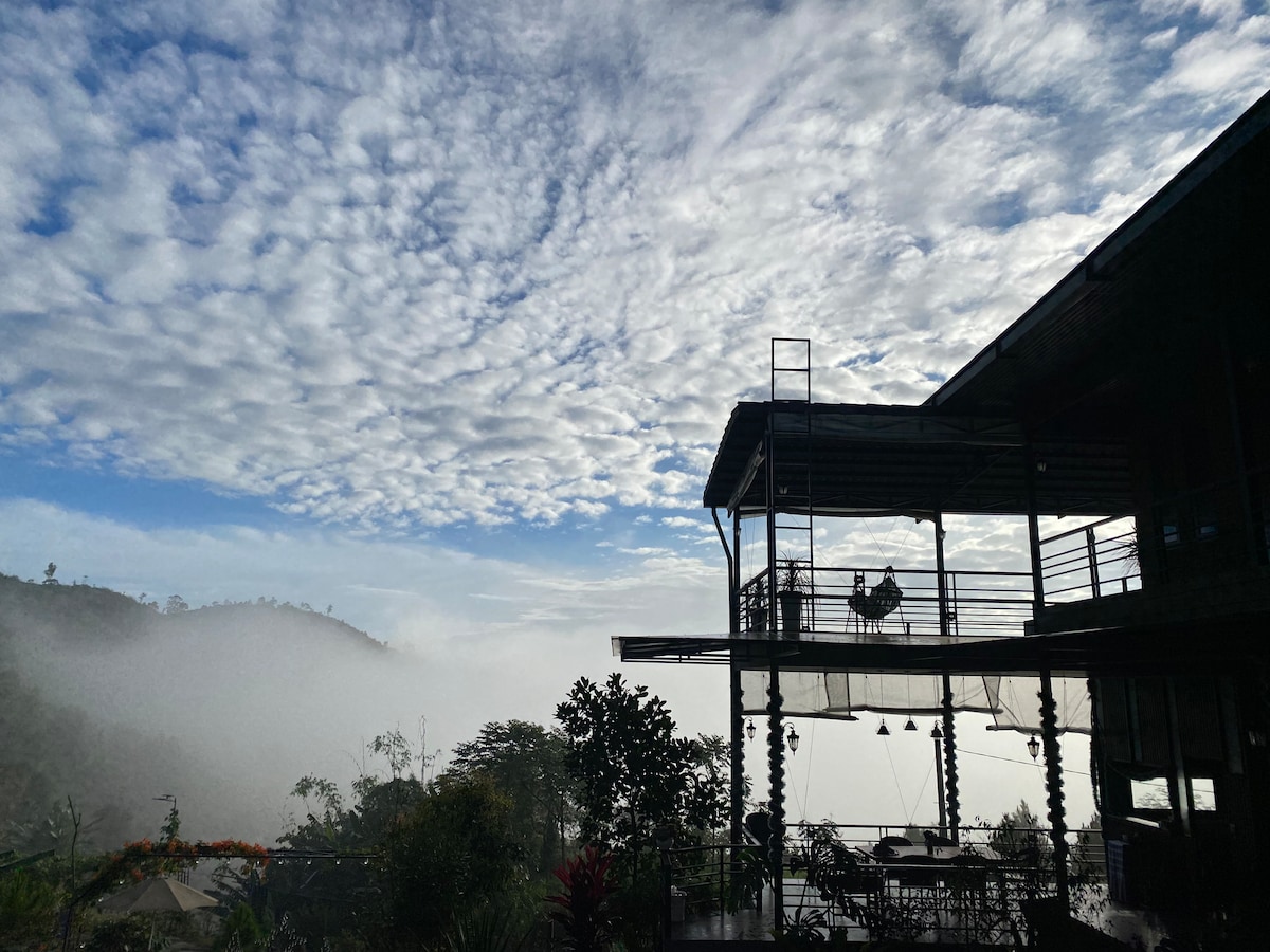 Garden By The Clouds - ը գտնվում է բլրի գագաթին, որտեղ կարող եք գտնել վաղ առավոտյան երկնքում լողացող սպիտակ ամպերով հիասքանչ տեսարաններ: Առավոտյան կարող եք տեսնել արևի ծագման կախարդական գեղեցկությունը, երբ նոր օրվա առաջին ճառագայթներն անցնում են ամպերի միջով, հարյուրավոր թռչունների երգերով լսում բնության ձայնը և զգում, որ թարմ և հարմարավետ միջավայրը շրջապատում է ձեզ ։ Գիշերը դուք ականատես եք լինում քաղաքի ալիքաձև տեսարանների և գրավում հսկա բյուրեղյա երկինքը, որի հազարավոր աստղեր շողշողում են:
