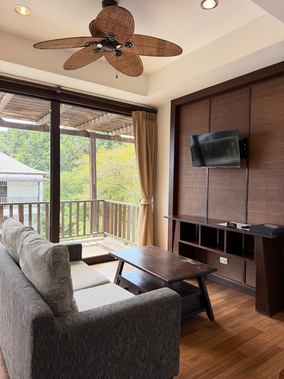 Բալիի հարմարավետ ոճով ձևավորված սենյակը բնութագրվում է փայտե կամարաձև դռներով և պատուհաններով, որոնք ջերմ, մասնավոր և հանգստացնող զգացողություն են հաղորդում։ Բնօրինակ փայտյա նյութերով զարդարված, բնական երանգներով և ջերմ լույսերով ստեղծված մթնոլորտը կատարյալ է լիարժեք հանգստի համար։ Սենյակում կա մեծ մահճակալ, հանգստավայրերի ոճով մուգ կանաչ վարագույր, գրասեղան կամ հագնվելու սեղան, հեռուստացույց և առանձին լոգասենյակ։ Հարմար է զույգերի, ճանապարհորդների կամ նրանց համար, ովքեր հանգիստ հանգստի վայր են փնտրում Կոհ Սամուիի Ֆիշերմենս վիլիջի մոտակայքում։