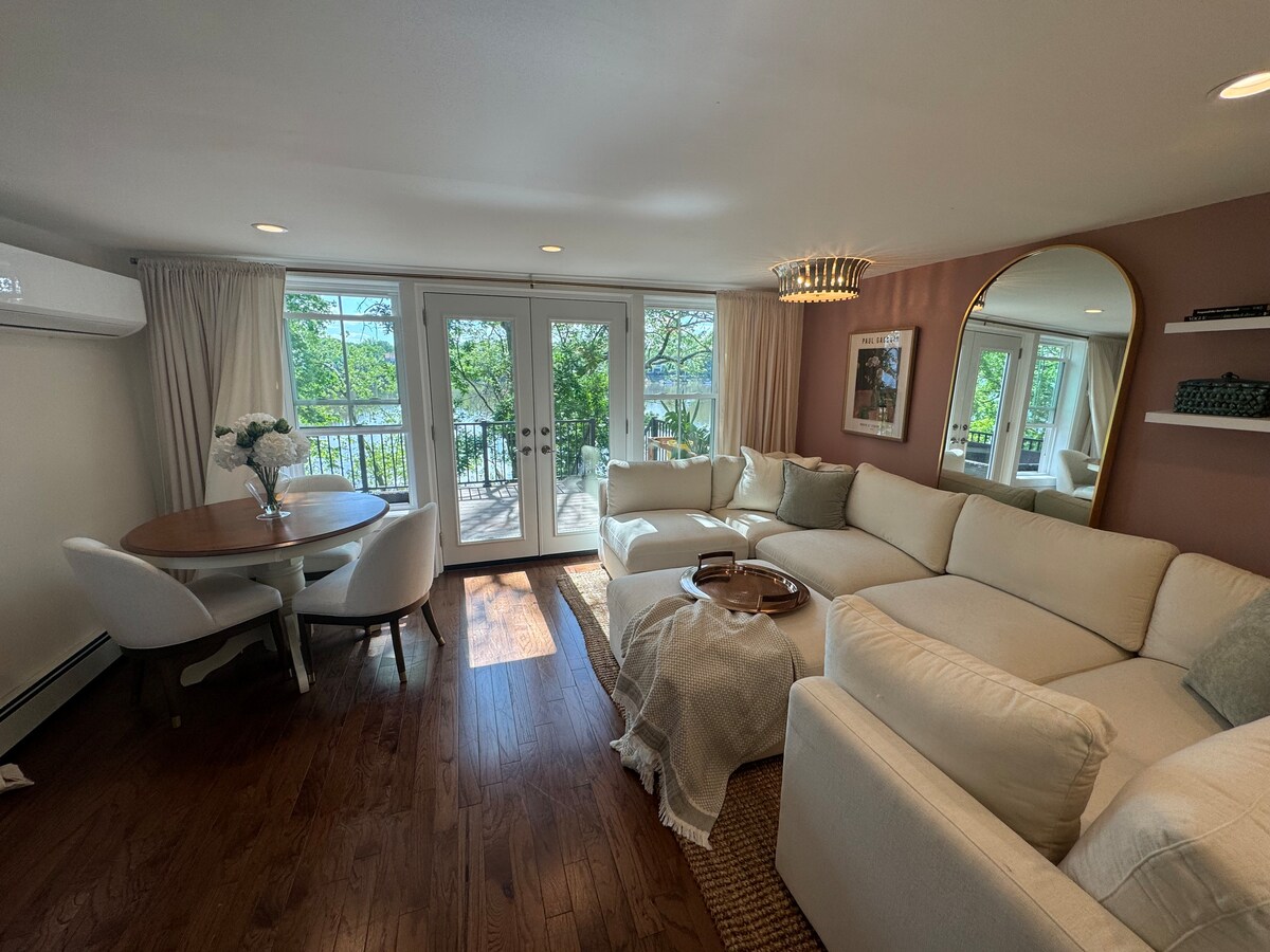 Beautiful riverfront historical townhome in the center of New Hope. This 3 story home is modernized and recently renovated, but retains many of the original 1808 details. Half a block from restaurants bars and shopping, it’s in the center of everything, yet tucked away in a relatively quiet corner. With a view of the iconic New Hope/Lambertville bridge and the Aquetong Creek waterfall from the deck. Two off-street parking space included!