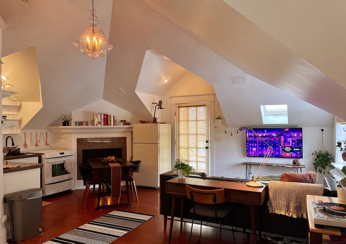 Բարձր առաստաղները, բաց սանդուղքը և պատուհանների պատերը տարածքը ողողում են լույսով (նույնիսկ Պորտլենդում), մինչդեռ կաղապարված նրբատախտակ Eames աթոռները ավելացնում են միջնադարյան ոճը: Գտնվում է Պորտլենդի սրտում ՝ հիանալի ռեստորաններից, սուրճից և զբոսայգիներից ոտքով հեռավորության վրա ։ Արագ, գիգաբիտային մանրաթելային ինտերնետ, ամբողջական խոհանոց, մեծ սեղան և մասնավոր բացօթյա տարածքներ, որոնք օգնում են առավելագույնի հասցնել ձեր հանգիստն ու հարմարավետությունը ՝ անկախ այն բանից ՝ միայնակ եք, թե խմբով ։ Խմբագրի ընտրանի Dwell - ում ։