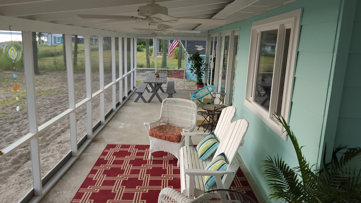 Մեր ցնցող գեղեցիկ ափամերձ տունը գտնվում է Քարթերս Քրիքի ափին ։ Հատուկ նախագծված Acorn Deck House - ում յուրաքանչյուր պատուհանից և սենյակից շունչ է քաշում դեպի ծովախորշը ։ Լավ հարմարեցված գլխավոր հատակն ունի կամարակապ առաստաղներ, մեծ հյուրասենյակ, համադամասերական խոհանոց, գլխավոր հատակի վարպետ և սպա տիպի հավաքածու ։ Տախտակամածը, պատիոները և այգիները տանում են դեպի մեր մեծ լողափը և նավամատույցը ձեր նավակի համար ՝ 8 դյույմանոց MLW- ով: Կայակներ, թիավարման տախտակ, ձկնորսություն և ծովախեցգետիններ ։ Կարճ ճանապարհ դեպի մեր հմայիչ քաղաքը ։
