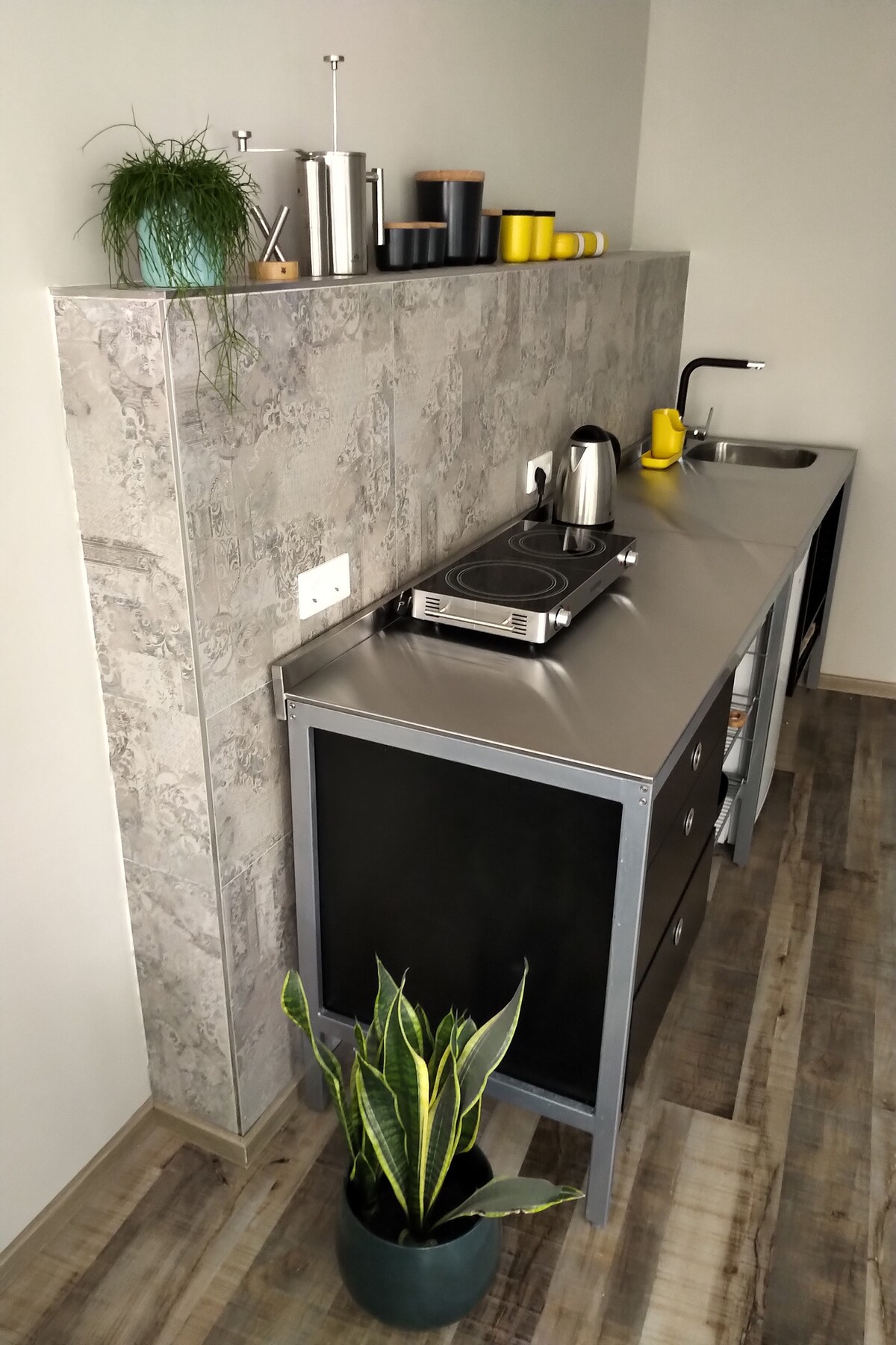 Moderne Wohlfühloase mit eigenem Eingang und Gartenblick Genießt euer privates Refugium mit einem komfortablen Eiche-Doppelbett (180x200), TV, Senseo-Kaffeemaschine, Mini-Kühlschrank, Toaster und Wasserkocher. Diele mit Parkettboden, Esstisch für 2 Personen und helles Badezimmer mit Dusche, WC und Föhn. Wichtig: Es steht keine Küche zur Verfügung, aber mit allem anderen seid ihr bestens versorgt! Freut euch auf einen erholsamen Aufenthalt nur für euch allein!