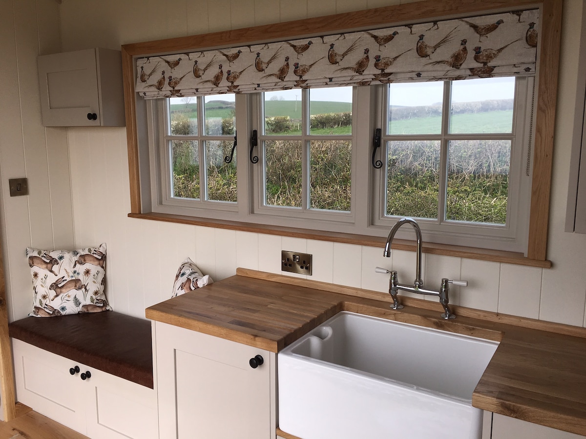 Փախեք առօրյա կյանքի քաոսից և հանգստացեք մեր ռոմանտիկ հանգստի համար ։ Այն գտնվում է Հյուսիսային Դևոնի ափի երկայնքով գտնվող AONB - ում և տեղակայված է իր սեփական այգում ՝ պիկետի ցանկապատի հետևում ՝ ընդարձակ կայանատեղով ։ Գեղեցիկ ավարտուն կաղնու մեջ և ճաշակով կահավորված: Հաճելի ներքնակի ջեռուցում, փայտյա մահճակալ, հարմարավետ բազմոց խորդանոցում և գերհարմարավետ երկտեղանի մահճակալ ։ Միայն 30 վայրկյան քայլեք Լունդի կղզու ամենահրաշալի տեսարաններով և մայրամուտներով կամ մի բաժակ գինի վայելեք կրակի շուրջ գտնվող աստղերի տակ…