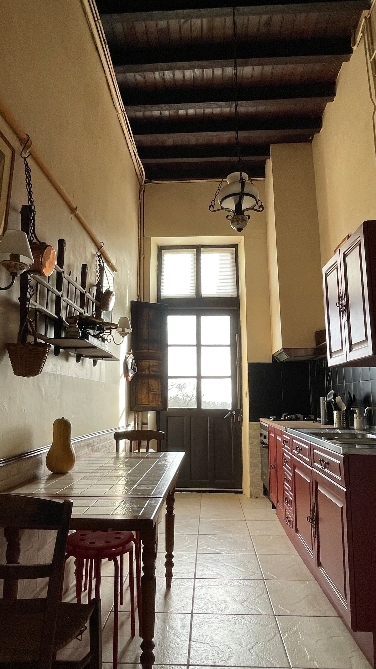 L'orangerie se situe dans l'aile sud d'un château du bordelais dont les premières fondations datent du 14ème siècle. Située à 50 minutes du centre de Bordeaux, cette propriété jouit d'une vue remarquable sur les vallons sud de la Garonne. Au coeur de la campagne gasconne, vous y trouverez calme et sérénité au sein d'un écrin de verdure. Vue directe sur la piscine et le tennis qui seront également à votre disposition.