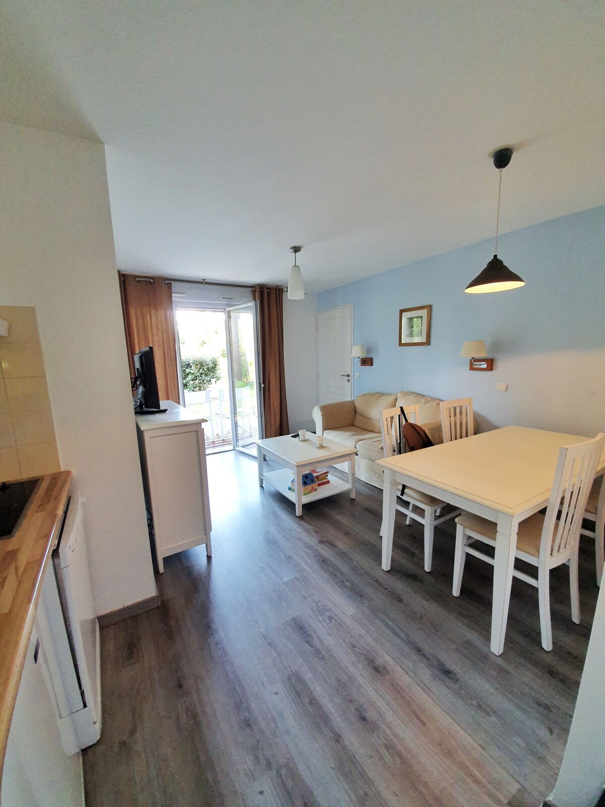 Հանգիստ տուրիստական բնակավայրում Բնակարան T3 36m² դասակարգված 2 աստղ, մեծ կտուր գոլֆի տեսարանով, սոճու և խցանված կաղնիներ: Մայիսից սեպտեմբեր ընկած ժամանակահատվածում հնացած լողավազանը ներառված է Զբոսանք կամ հեծանվով մուտք դեպի Պորտ դ'Ալդրետ ծովային լճի լողափ, օվկիանոսային լողափեր, հեծանվային ուղիներ և Հին Բուկաուի գործունյա ռեստորաններ և խանութներ ։ Հարմարավետ ՝ միացված հեռուստացույց, Wi - Fi, սպասք լվացող մեքենա, միկրոալիքային վառարան/գրիլ, պլանչա, նեսպրեսո, փոշեկուլ: Տրամադրվում են սրբիչներ, սրբիչներ և սրբիչներ ։