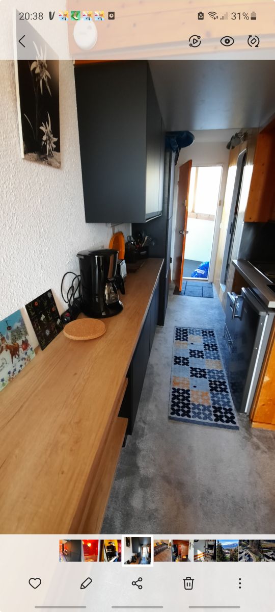 beau Studio rénové de 24m2 Accès direct aux pistes,garderie,jardin enfants ESF et tous commerces... Au dernier étage avec balcon offrant une vue sur les montagnes et la station. équipements: un canapé lit 2 places et 2 lits simples gigogne-couettes et oreillers-lave vaisselle- combiné micro-ondes-plaque induction-frigo-grill pain-bouilloire-cafetiere gusto-app fondue et raclette-TV-fer repasser-sèche cheveux coin salon et lits simples séparables par un rideau