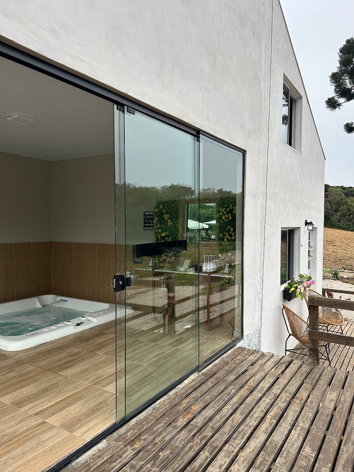 Uma hospedagem pensada e construída por mãos e corações. Amplas janelas de vidro proporcionam uma integração total com a natureza. Além de um bosque privativo com churrasqueira, redes, área de fogueira e um deck com banheira hidromassagem, a acomodação conta com sala, cozinha, banheiro com parede de vidro, cama de casal e espaço zen, TV Smart com Netflix e YouTube. Simplesmente perfeita! Mais que uma acomodação, ficar na Vibe é uma experiência difícil de explicar, mas muito fácil de sentir.