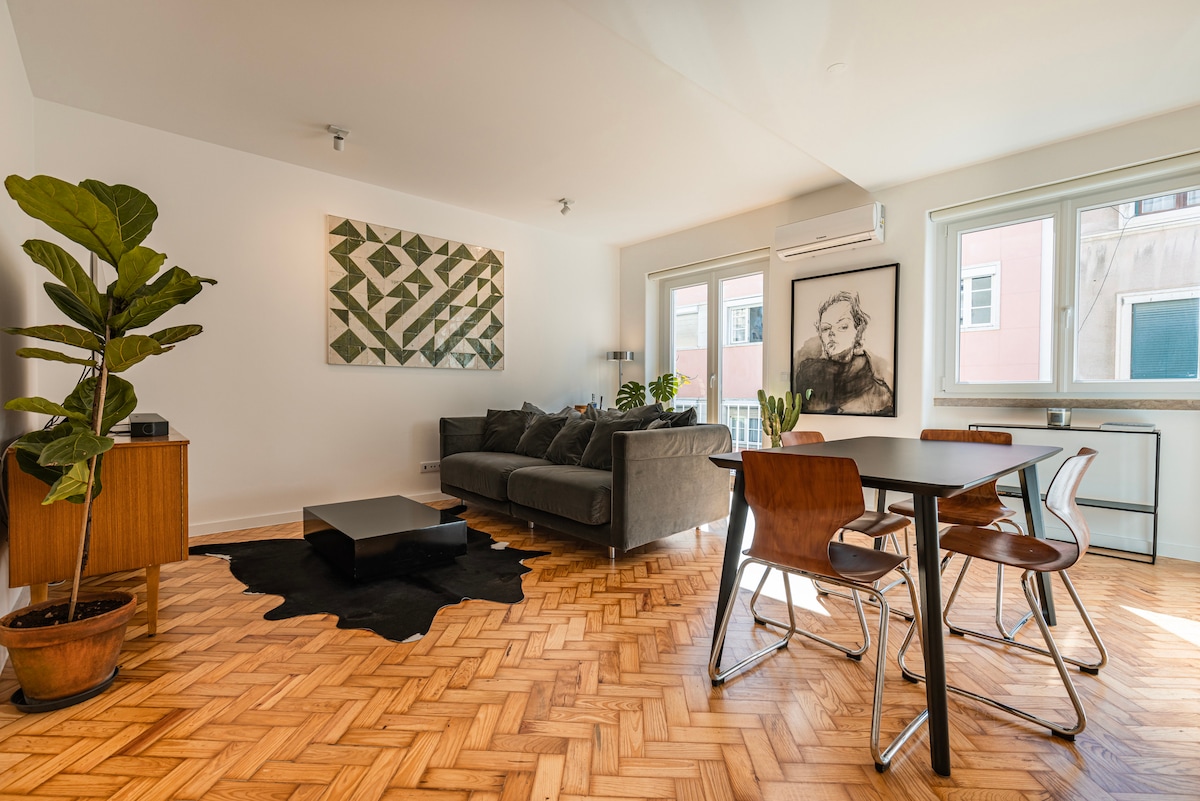 - Apart with unique personality, designed for QUIET PEOPLE, who want to enjoy Lisbon's light, in a Good Energy, cozy setting 💛 - Located in a top district (home to most embassies) - Special Nature spot in the backyard, with open view 💚 - Two fully equiped workstations + Fast internet speed (<500Mbps) + USB ports in all rooms + USB/Energy cable for the balcony - Powerful AC / Modern heating systems / Exterior heater&blankets - If tired, recover&relax in a professional massage chair 💖