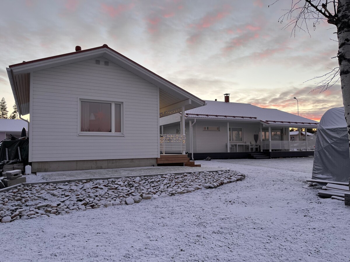 Tervetuloa rentoutumaan ja nauttimaan olostasi! Huippu sijainti, keskustaan autolla 10 minuuttia, Joulupukin luo ehdit 15 minuutissa. Ulkoilureitit ovat vieressä. Piharakennus tarjoaa paikan rauhoittumiselle aktiivisen päivän päätteeksi. Puulämmitteinen sauna takaa pehmeät löylyt ja katetulta terassilta löytyy poreallas. Avara oleskelutila on luotu yhdessäoloon. Vierasmajaan on pihalta erillinen sisäänkäynti ja autopaikka on käytössäsi.