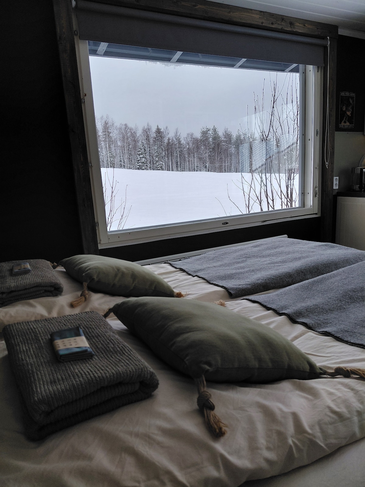 Հեշտ է հանգստանալ այս յուրահատուկ և խաղաղ հանգստի վայրում ։ Փայտե շրջանակով, մասամբ ապակեպատ հյուսիսային լույսերի հյուղակ, որը կառուցվել է 2019 թվականին ։ Կատարյալ է ձմռանը հյուսիսային լույսերը և աստղալից երկինքը դիտելու համար ։ Ապակե տանիք հյուսիսային կողմում ։ Ամռանը հյուղակը լուսավորվում է ամառային գիշերային արևով ։ Հյուղակն ունի երկու մահճակալ ՝ ապակե տանիքի տակ, խոհանոցի տարածք, լվացքասենյակ/զուգարան և քամու պահարան ։ Ապակե տանիքն ունի ջեռուցում, ինչը պայծառ է պահում այն ՝ չնայած եղանակին ։