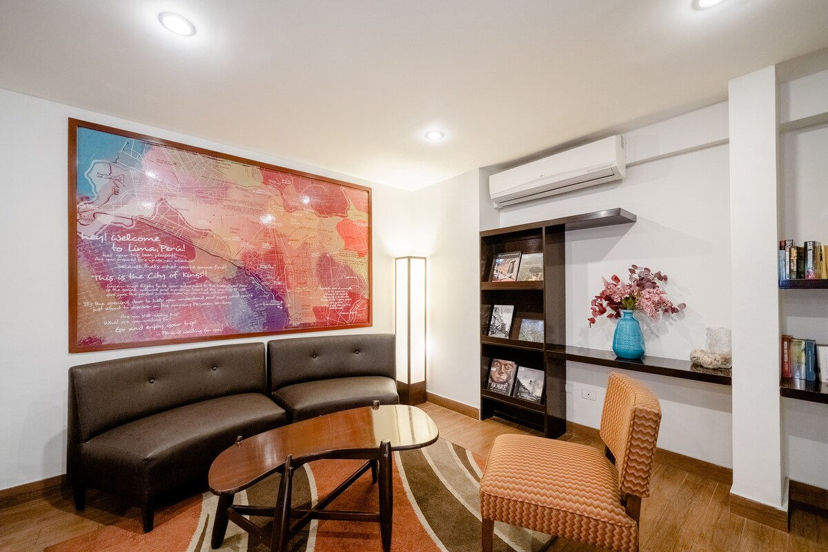 Լիմայի պատմական և զբոսաշրջային կենտրոնին շատ մոտ գտնվող գերազանց ժամանակակից և առանձին սենյակներով զբոսաշրջիկների համար լավագույն հյուրանոցներից մեկը ՝ բոլոր հարմարություններով և ոտքով հեռավորության վրա: 200 ՄԲ Wi - Fi արագությամբ հյուրանոց ՝ գերազանց և նոր օպտիկական մանրաթելերով ։ Մի քանի րոպեից քայլելով ՝ կճանաչեք Plaza de Armas de Lima - ին, Plaza San Martín - ին, Իգլեսիասին և հիանալի պերուական խոհանոցին ՝ հեշտությամբ մուտք գործելով դեպի քաղաքի կենտրոնի տարբեր զբոսաշրջային վայրեր: Նախաճաշը ներառում է ձեր այցի ամեն օրը: