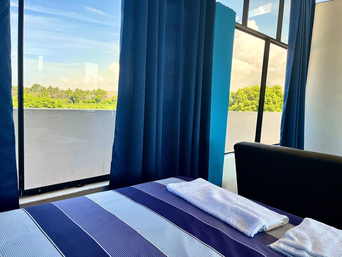 La habitación/ apartamento está ubicada en un tercer piso con vista al atardecer y amanecer. La mayor parte de nuestras paredes son de mamparas permitiendo una hermosa vista al cielo. Contamos con un proyector en el interior de la habitación con cuentas de Netflix, HBO, Amazon y Disney disfrutando de una gran pantalla como si estuvieras en el cine; también tenemos una piscina o jacuzzi, cocina, parrilla, baño, patio, comedor y unos libros todo. La mejor opción para relajarse sin interrupciones.