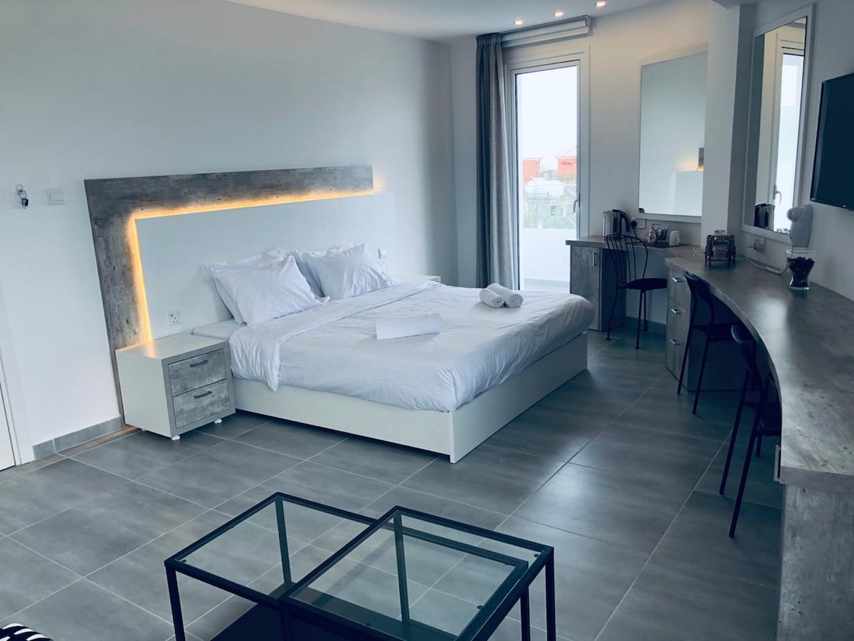 Լողավազանի տեսարանով բարձրակարգ ստուդիան առաջարկում է ընդարձակ և հարմարավետ այց ՝ ընդունելով մինչև 3 հյուրի ։ Այն ունի երկտեղանի կամ երկտեղանի մահճակալ, իսկ երրորդ հյուրի համար տրամադրվում է բարձրորակ ծալովի մահճակալ ։ Լիովին կահավորված խոհանոցիկ (միկրոալիքային վառարան, գազօջախ, սառնարան) և օդորակիչ ։ Վայելեք հարթ էկրանով հեռուստացույց, անվճար Wi - Fi և առանձին լոգասենյակ ՝ մուտքի ցնցուղով ։ Լողավազանի տեսարանով այս ստուդիան ապահովում է հանգստացնող մթնոլորտ, որը գտնվում է Այիա Նապայում ՝ ռեստորանների, գնումների և տեսարժան վայրերի մոտակայքում ։