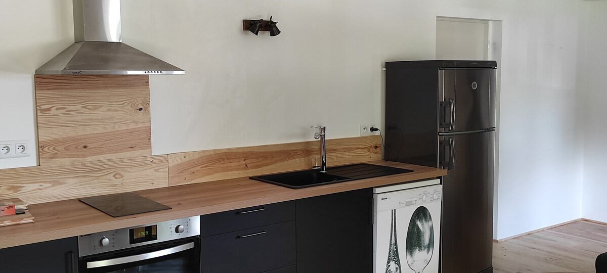 Maison de plain-pied. Aménagements et décorations modernes. Cuisine équipée, séjour, salon, 3 chambres (1 lit 160, 2 lits 140), salle d'eau, 2 WC, 1 chambre avec salle d'eau privée (1 lit 160. Terrasse couverte. Jardin privé non clos. Salon de jardin. Barbecue. Non adapté aux personnes à mobilité reduite. Possibilité de location courts séjours en basse saison à partir de 3 nuits. Un appartement de 33 m² attenant à la maison est également disponible à la location avec une entrée indépendante.