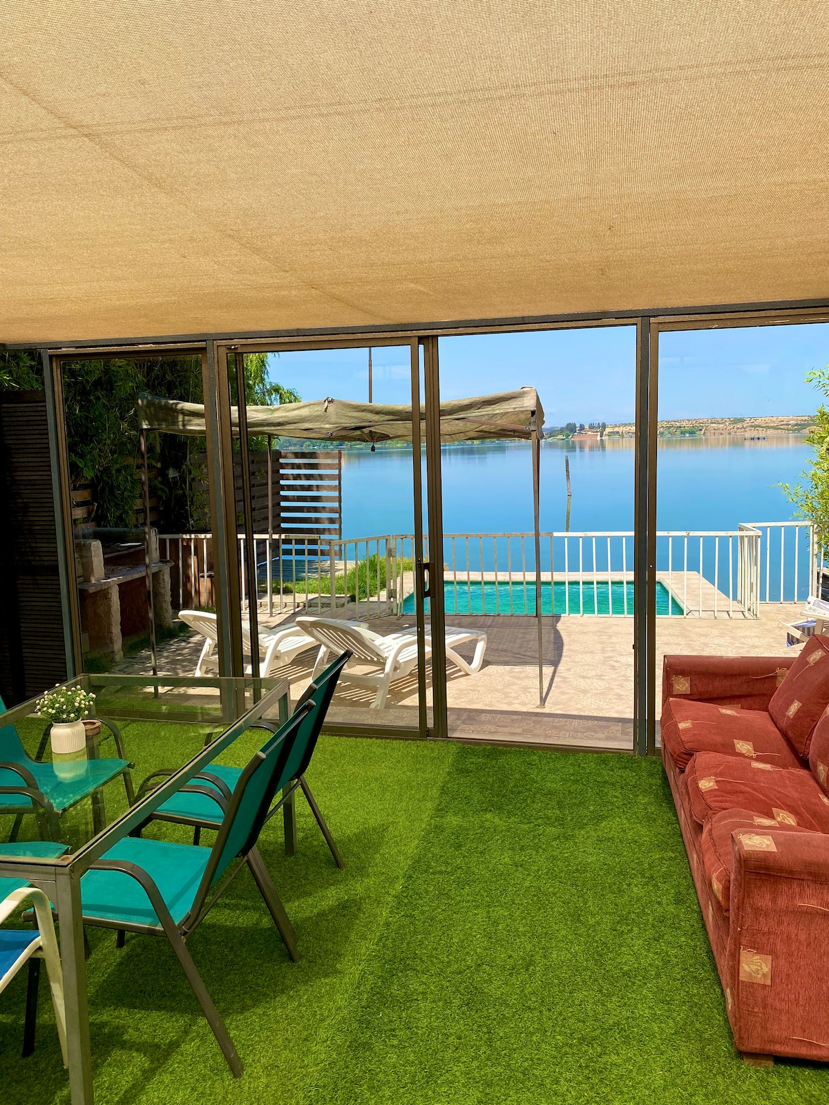 Casa rodante ubicada en un quincho a orilla de lago, ideal para descansar y disfrutar de la naturaleza. Cuenta con dos camas en el interior, juego de terraza y piscina privada. El baño, cocina y refrigerador se encuentran afuera. También puedes llevar carpa para alojar hasta 6 personas adicionales. Perfecto para escapadas familiares o con amigos en un entorno tranquilo y natural.