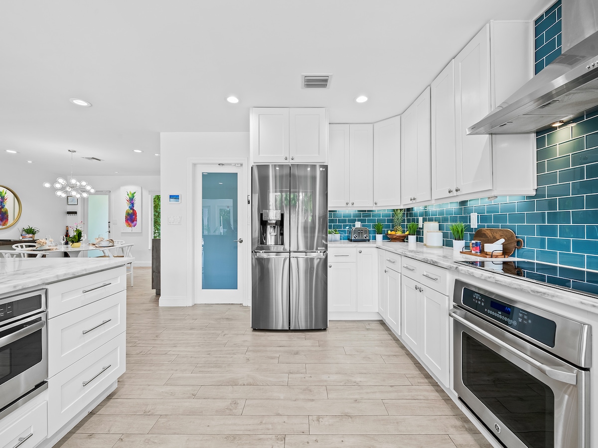 Բարի գալուստ ձեր արևադարձային օազիս ՝ լողափից ընդամենը 0,1 մղոն հեռավորության վրա և Ֆորտ Լոդերդեյլի լողափնյա տարածքից մի քանի քայլ հեռավորության վրա ՝ խանութներով և ռեստորաններով: Հանգստացեք առանձին հետնաբակում ՝ ջակուզիով, խորովածով, ցանցաճոճով, արևի սպասքով և ներսի կամ բացօթյա ճաշկերույթներով ։ Ներսում կա մեծ առանձնաբաժին, ամբողջական խոհանոց, արագ Wi - Fi, Սմարթ հեռուստացույցներ և հեռավար աշխատանքի համար նախատեսված գրասեղաններ ։ Կատարյալ է ռոմանտիկայի, ընտանեկան զվարճանքի կամ խաղաղ հանգստի համար, որը ձեզ սպասում է իդեալական լողափնյա հանգստի համար: