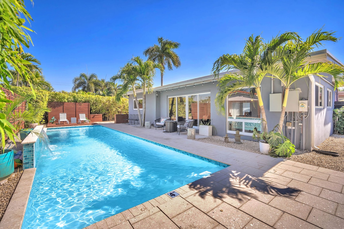 Welcome to Sunhouse, your private pool oasis in the perfect location: just 1 mile from the beach and the Pompano Beach Fishing Village! This house is the perfect Florida escape with everything you need plus the luxury of your own (BIG) heated pool! Relax in the backyard with comfy loungers, adirondack chairs, BBQ, and pool toys. Want to explore? Hop on our bikes for a quick 10-minute ride to one of Florida's best beaches, where you'll find great restaurants & shops!