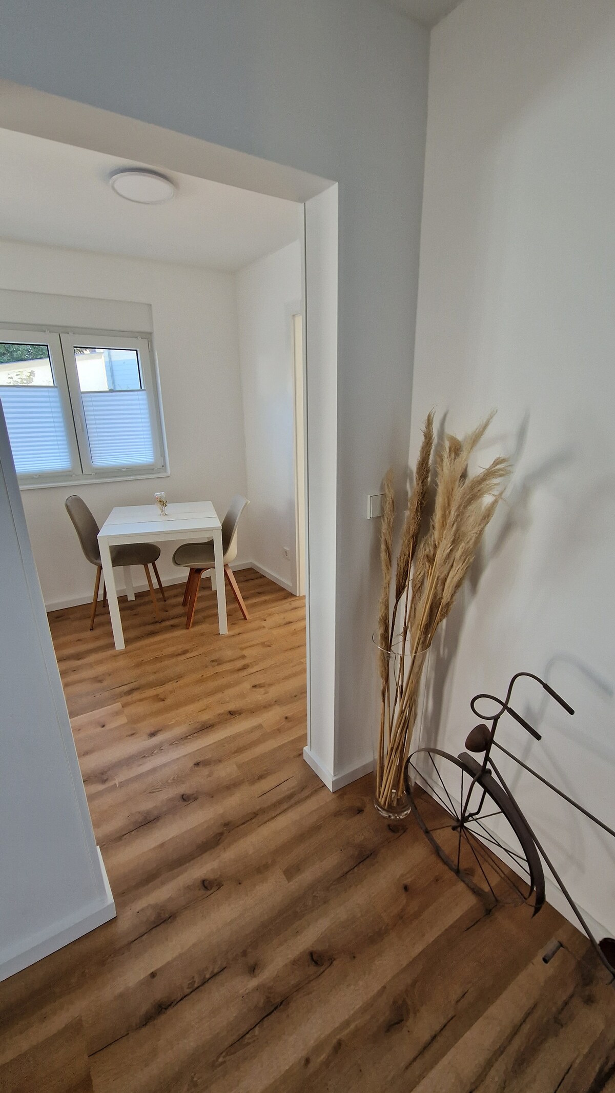 Փոքր, կոմպակտ և հարմարավետ ։ Նոր կահավորված 1,5 սենյականոց բնակարան հանգիստ բնակելի տարածքում ՝ Ֆլայնում, անմիջապես Հեյլբրոննի հարևանությամբ ՝ քաղաքային ավտոբուսի տարածքում ։ Կանգ առեք ոտքով ընդամենը 3 րոպե հեռավորության վրա ։ Բնակարանն ունի սեփական մուտք ։ Ննջասենյակը կահավորված է երկտեղանի մահճակալով ՝ 1.60 x 2.00 մետր, որը կարող է օրվա ընթացքում վերածվել մեկօրյա մահճակալի ։