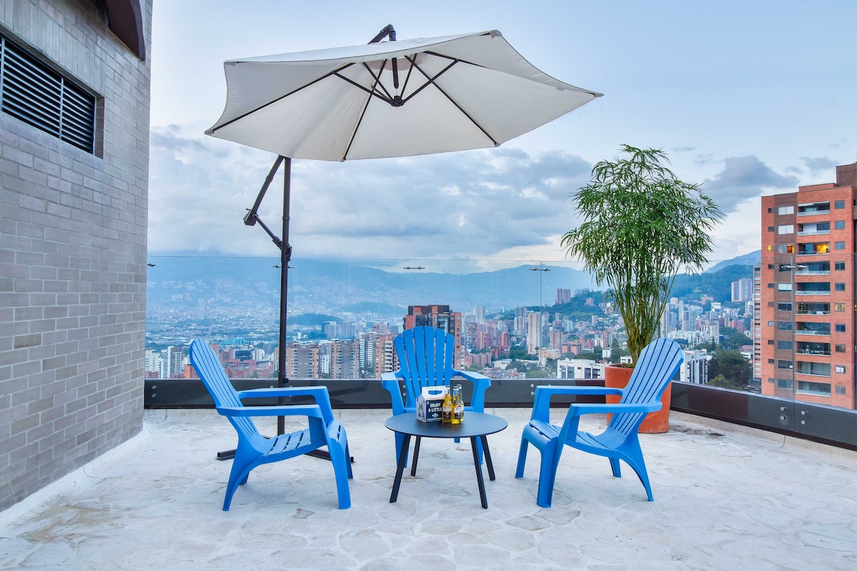 Սա ԷՆԵՐԳԻԱ է, ԱՊՐՈՒՄ է Մեդելինի ճարտարապետական մրցանակի արժանացած նշանավոր շենքը: Այս 18 - րդ հարկի բնակարանը շենքի ամենաբարձր հարկն է ՝ տեռասով, ունի քաղաքի և լեռան աներևակայելի տեսարաններ ։ Բնակարանն ունի հատակից մինչև առաստաղի ապակի, առանձին օդորակիչ, LR - ի և գլխավոր ննջասենյակի առանձին օդորակիչ, հսկայական պատշգամբ ՝ ջակուզիով և էլեկտրական հովանիով, մոտոցիկլետների երանգներ, 60" Ultra HD 4K հեռուստացույց, գերարագ 300 ՄԲ WIFI, King bed in the master BR և բազմոց մահճակալ: Տանիքի լողավազան և սպա, գոլորշի և մարզասրահ: