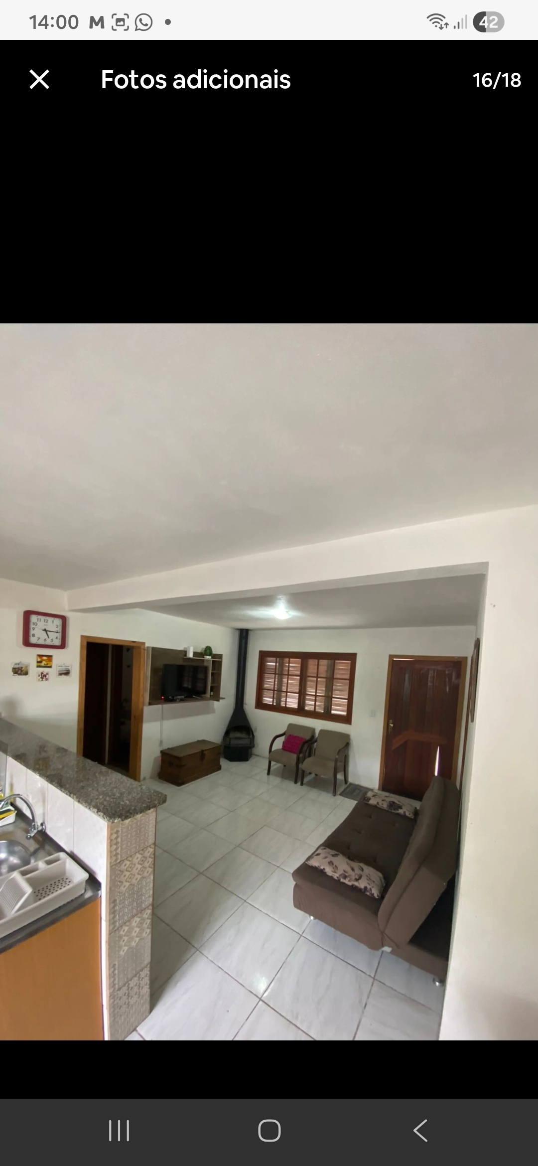 Casa totalmente equipada com duas salas, lareira e churrasqueira interna. Ambiente confortável e tranquilo.