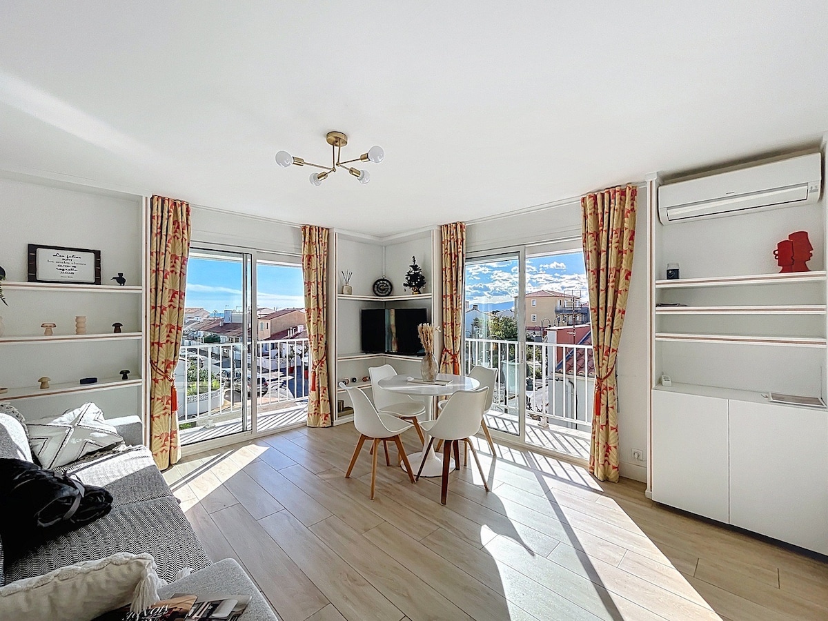 Գտնվելով հիպերկենտրոնի և նավահանգստի միջև գտնվող ծովափին ՝ իմ 30 քմ մակերեսով բնակարանը կարող է տեղավորել մինչև 4 մարդ ապահով կացարանում ։ Վերանորոգված է, այն նախագծված է ջերմ և հանգստացնող մթնոլորտ ՝ ծովի հիասքանչ տեսարանով: Մեծ տեռասը թույլ կտա ձեզ վայելել ձեր ճաշերը դրսում: Միջերկրական ծովի կայանատեղում ձեզ վերապահված է կայանատեղի ։ Բնակավայրի ստորոտում ձեզ սպասում են տարբեր խանութներ...