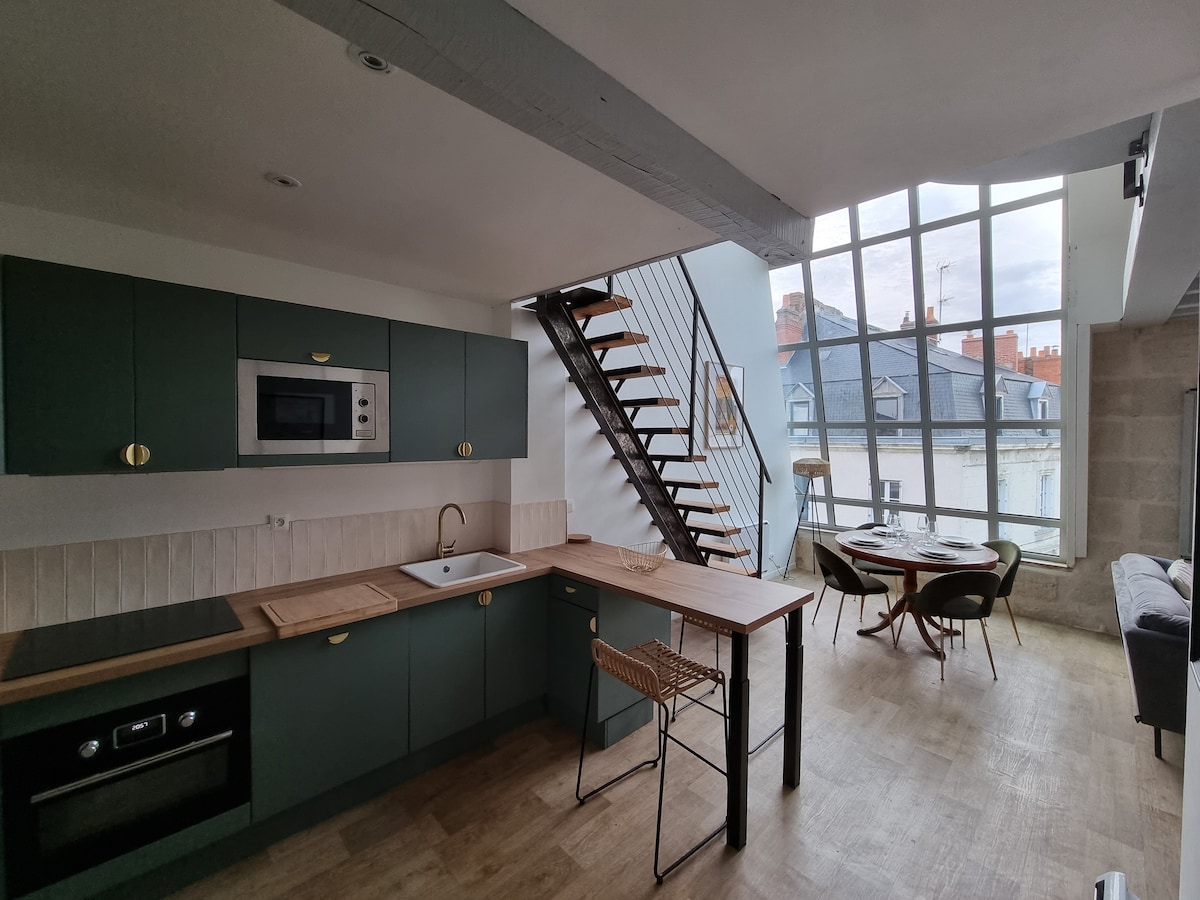 Հենց Սաումուրի կենտրոնում ՝ իր մասնավոր ավտոկայանատեղիով, եկեք և անմոռանալի հանգիստ անցկացրեք հոգատարությամբ և նրբագեղությամբ զարդարված մեր դուպլեքսում ։ Ամբողջովին վերանորոգված, արտասովոր առարկաներով զարդարված ՝ մենք մեր ամբողջ սիրտը դնում ենք դրա մեջ, որպեսզի դուք բացահայտեք մեր գեղեցիկ Սաումուրոյզ շրջանը ՝ միաժամանակ զգալով ինչպես տանը: Անկախ այն բանից ՝ զույգ եք գալիս, թե ընտանիքով, L'Instant D'Ambre - ն սպասում է ձեզ ։ Ազատորեն աչքի անցկացրեք Les Voyages D'Ambre - ի առաջարկած հայտարարությունները ։