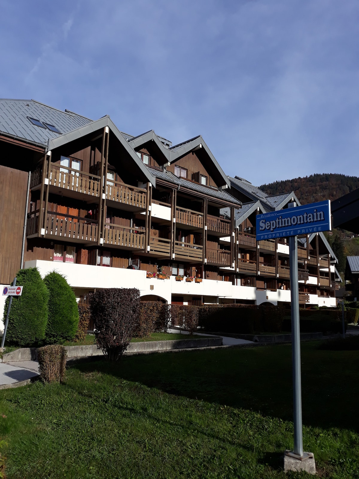 Բնակարանը գտնվում է Վերշեի բարձունքներում՝ մեր շալեի առաջին հարկում։ Սամոենի և Մորիյոնի (Գրան Մասիֆի տարածք) լանջերի գեղեցիկ տեսարաններ։ Հանգիստ և հարավում ։ Դուք կլինեք Մորիյոնի լեռնադահուկային վերելակի կայանատեղիից և Մորիյոնի գեղեցիկ կապույտ լճից 4 կմ հեռավորության վրա։ Կայանատեղ բակում ։ 4 անձի համար. ննջասենյակ՝ երկտեղանի մահճակալով, և բազմոց-մահճակալ՝ հյուրասենյակում (ննջասենյակը պատուհան չունի)։ Լիովին կահավորված խոհանոց ։ - Առատ պահեստ