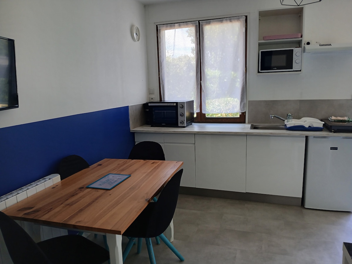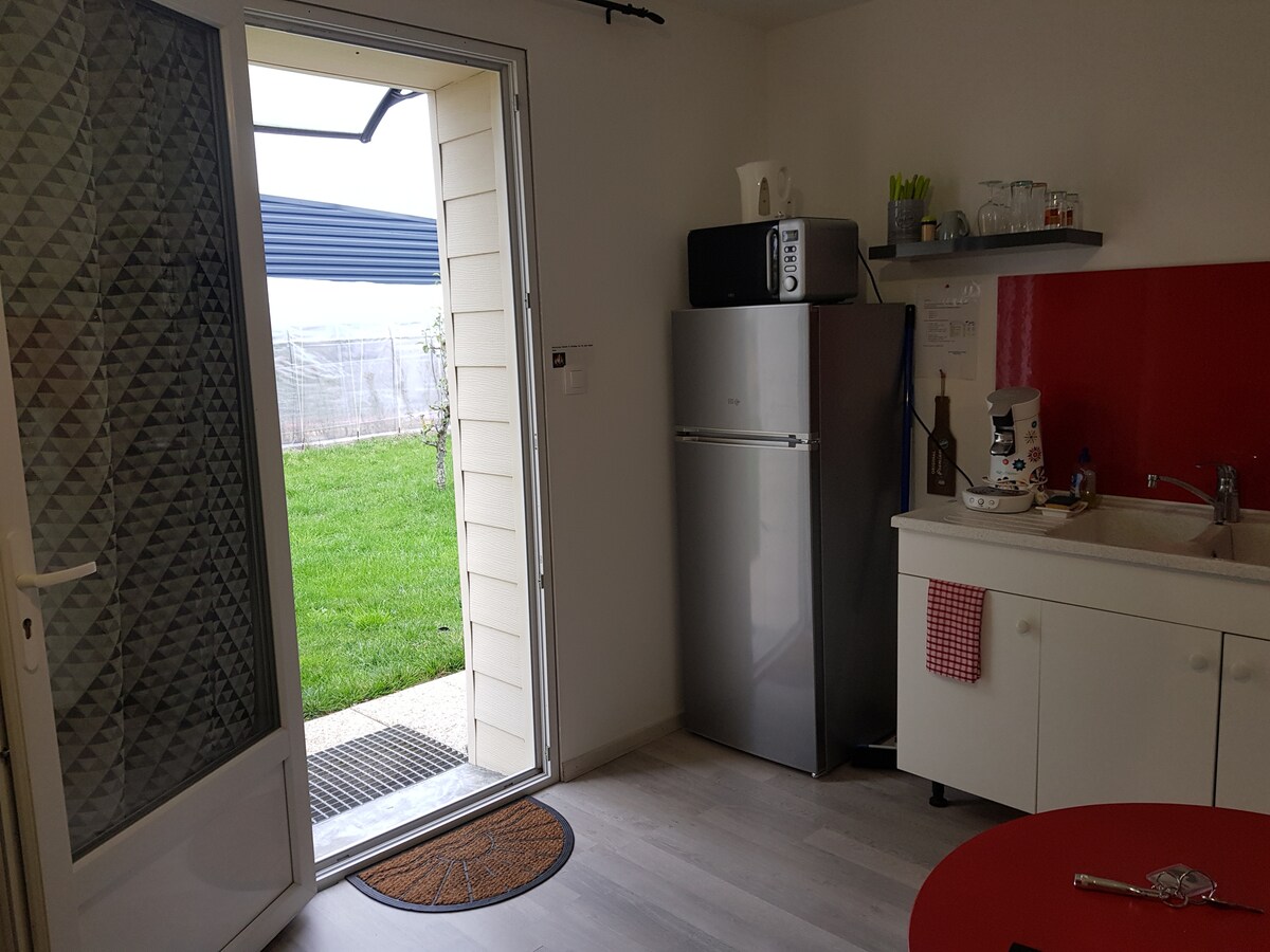 20 մ2 մակերեսով նոր և լուսավոր ստուդիա: Իդեալական գտնվում է գյուղում 20 րոպե Nantes, 10 րոպե Clisson եւ 1 ժամ Puy du fou Ստուդիան հարմարավետ է, լիովին կահավորված և կահավորված ՝ երկտեղանոց մահճակալ, հեռուստացույց, wi - fi, կահավորված խոհանոցիկ, ցնցուղարան և անկախ զուգարան: Հյուրերը կարող են վայելել խաղողի այգուն նայող տեռասը և ձեր մեքենայի համար նախատեսված մասնավոր վայրը ։ Ձեր տրամադրության տակ է նաև գազի մանղալ: The +: Նախաճաշը ներառված է գնի մեջ
