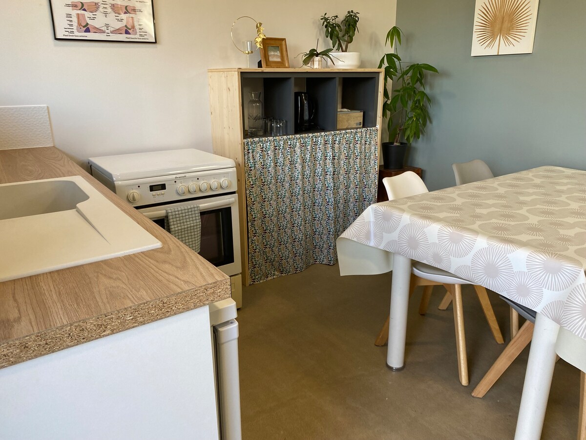 30 մ² մակերեսով դուպլեքս ստուդիա ՝ մեր տան շարունակականության մեջ ։ Մուտքն անկախ է: Առաջին հարկում ՝ խոհանոց ՝ գազօջախով, սառնարանով, թեյնիկով, ... 1 մահճակալ 2 հոգու համար (2 առանձին ներքնակ), ցնցուղի սենյակ + զուգարան ։ Սանդուղքով հասանելի վերևի երկտեղանի մահճակալ ։ Փայտի վառարան և ջեռուցիչներ Արտաքին տարածքը ՝ 20 մ² տեռաս Էնջերսից և Շատո - Գոնտիեից 20 րոպե հեռավորության վրա Մեքենայով 5 րոպե մինչև Isle Briand Park (ձիարշավ, Առյուծների աշխարհի գավաթ և զբոսանքներ)
