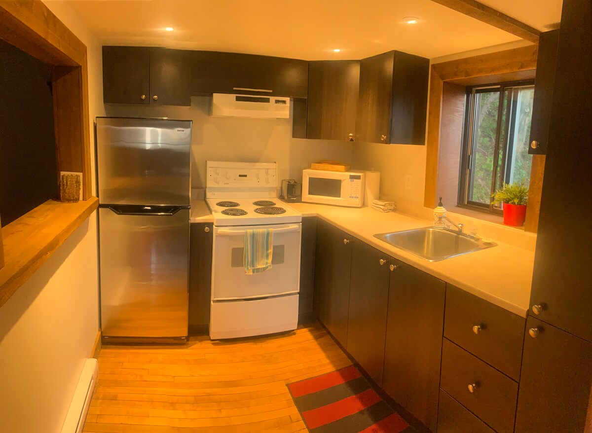 Սկանդինավյան փոքր շալե երկու հոգու համար, որոնք իդեալականորեն գտնվում են ՝ վայելելու Charlevoix - ի տեսարժան վայրերը ։ Այն ունի ջերմային միացում (ջակուզի, շոգեբաղնիք, համամ) Շատ մտերմիկ և անտառների մեջտեղում, տեսարանը նայում է վեհաշուք գետին և հեռվում գտնվող լեռներին: Բոլոր ժամանակակից սարքավորումները կան, իսկ հարմարավետությունը ՝ բացարձակ A/C և բացօթյա բուխարի ։ Բաց կոնցեպտի դիզայնը նախատեսված էր բնության մեջ խորասուզված փորձառության համար ՝ մեծ պատուհաններ, համայնապատկերային ցնցուղարան: Մուտք գործեք մասնավոր ճանապարհով ՝ 500 մ բարձրության վրա ։