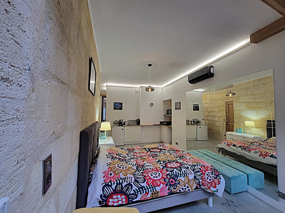 Ձեզ ողջունում են իմ գեղեցիկ 1 սենյականոց բնակարանում, սովորաբար «Բորդոյի ոճով» իր կրաքարե պատով և շռայլ մարմարե բուխարիով: Լի է հատկանշական տարրերով, շատ մաքուր, հարմարավետ և լուսավոր է, այն հին քաղաքի կենտրոնի ամենահիասքանչ տեղադրությունն է: Հեշտ է ոտքով մուտք գործել քաղաքի կենտրոնի բոլոր վայրերը ։ Բնակարանը գտնվում է 19 - րդ դարի շենքի 1 - ին հարկում (առանց վերելակի )։ Շենքից 20 մ հեռավորության վրա գտնվում է ՀԱՆՐԱՅԻՆ ավտոկայանատեղի (ՈՉ ԱՆՎՃԱՐ), որը կոչվում է «Camille Julian »:
