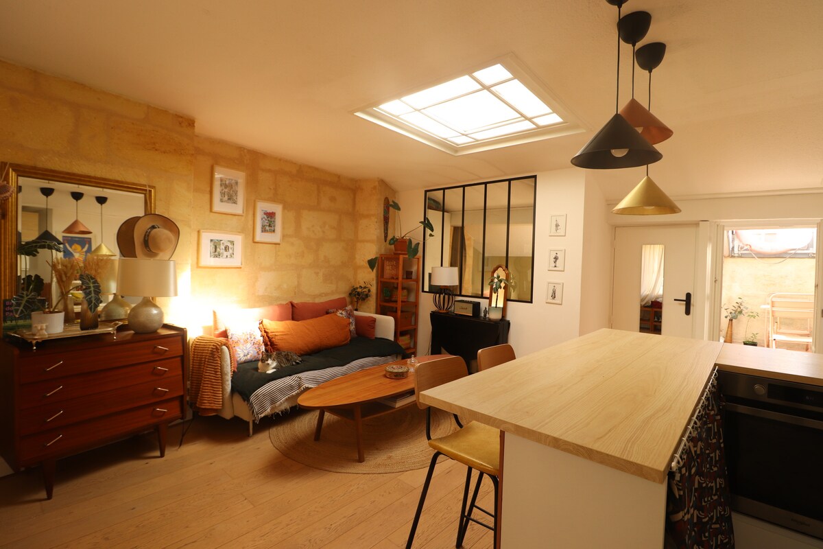 Բարի գալուստ Բորդոյի պատմական սիրտը ։ Զգացեք այս հմայիչ բնակարանը, որը գտնվում է նավամատույցների, գերժամանակակից բարերի և ռեստորանների մոտակայքում ։ Տեղադրված լինելով 18 - րդ դարի շենքում ՝ այն ունի ընդարձակ սենյակներ, օրիգինալ փայտե հատակներ և բարձր առաստաղներ ։ Կատարյալ է աշխույժ մթնոլորտ վայելելու համար ՝ մնալով հարմարավետ և իսկական միջավայրում ։