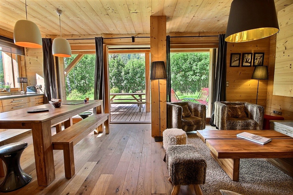 Շալեից բոլոր կողմերից բացվում են լեռնագագաթների համայնապատկերներ ։ Բացի հյուրասենյակից, որի հատակից մինչև առաստաղ պատուհանները լանդշաֆտում ապրելու տպավորություն են թողնում, հատակն առաջարկում է 3 ննջասենյակ (2 փակ) և լոգասենյակ ՝ բոլորը մեծ բացվածքներով ՝ դիտակետերը բազմապատկելու համար ։ Ինտերիերի դիզայնը, իսկության և ժամանակակիցի խառնուրդը, ընդունում է կարմիր մետաղալարերի շալե ոճը, որը համահունչ է գերիշխող փայտի հետ, բնական է: Ընտրությունը hues եւ նյութերի ապահովում է cocooning մթնոլորտ.