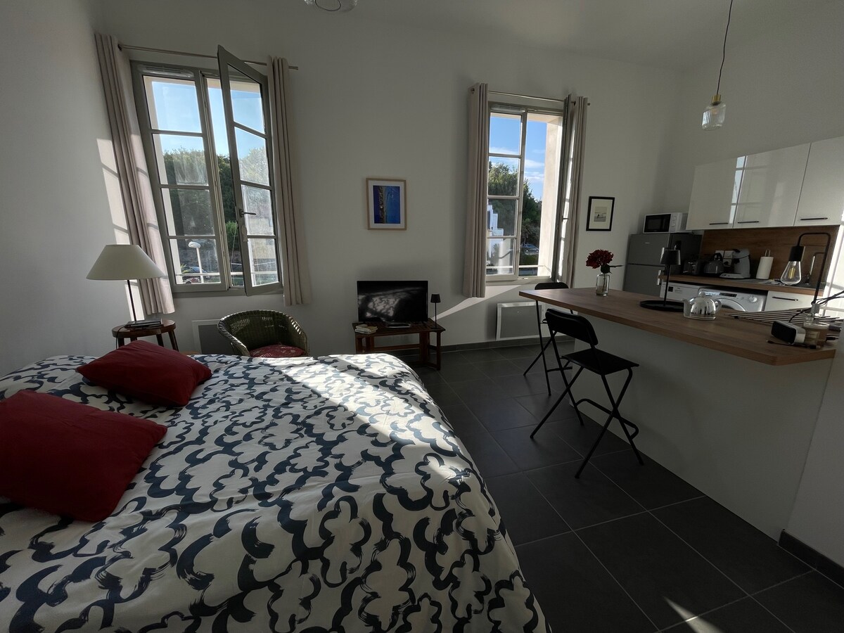 On the ground floor on a private garden with terrace, 50 m above the port and 200 m from the city center. Calm and tranquility, sheltered from the winds, in a small street. High-end services. Neat decoration. Fully equipped kitchen (induction hob, oven, microwave, robot, dishes, cookware, dishwasher). Linen sheets. Washing machine and tumble dryer. Shaded terrace, garden table and chairs. Sunny and protected garden.