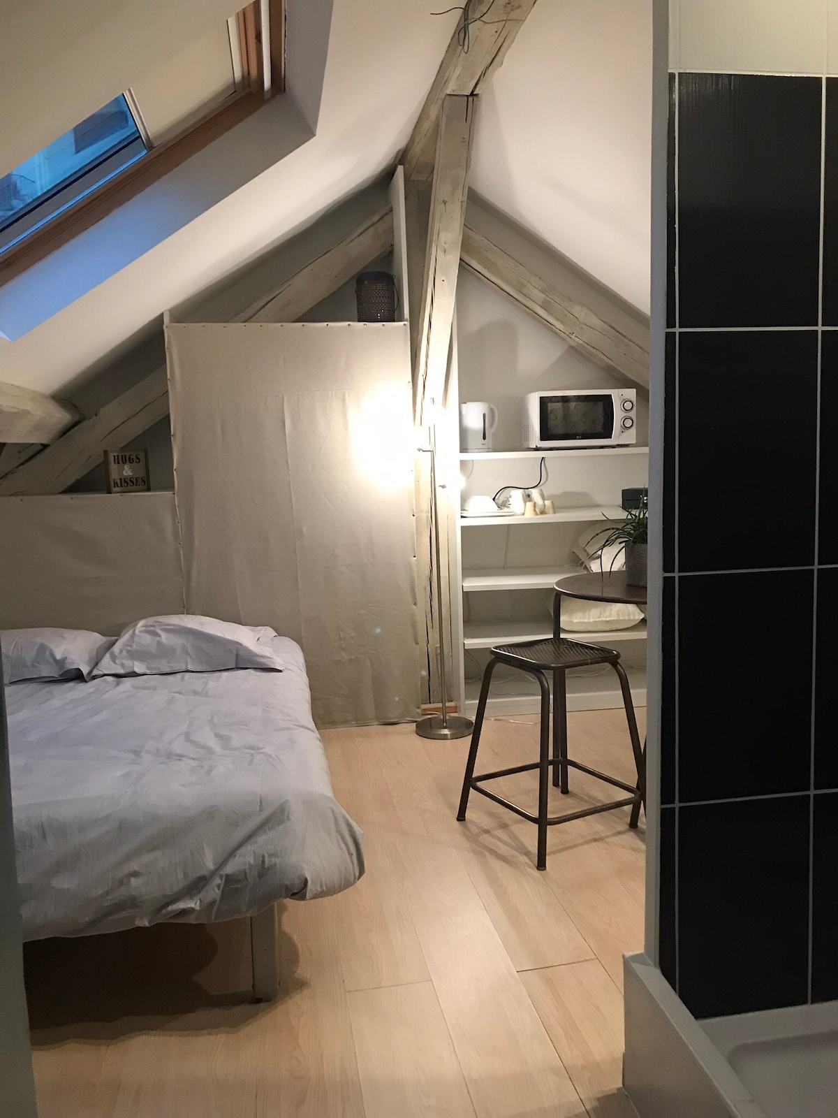 Հմայիչ միկրո - ստուդիա քաղաքի սրտում, լավ ընտրված և ֆունկցիոնալ միայն 1 հյուրի համար, ներառյալ ՝ մուտք, խոհանոցիկ, մեծ պատուհաններով ննջասենյակ, զգեստապահարան, առանձին լոգասենյակ ՝ ցնցուղով, լվացարանով և զուգարանակոնքով (մանրէազերծիչ )։ Հանգիստ տեղակայված (բակի կողմում), հեշտ հասանելի (ավտոբուսի և երկաթուղային կայարաններ ՝ 1 րոպե հեռավորության վրա )։ Ամեն ինչ 5 քայլ հեռավորության վրա է ՝ խանութներ, կինոթատրոններ, Բոնլիու մշակութային կենտրոն, ռեստորաններ, հին քաղաք և լիճ: