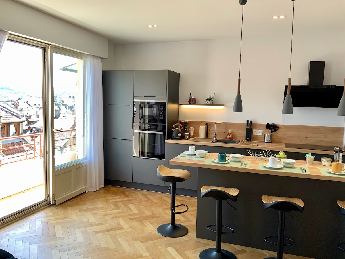 Երբևէ ցանկացե ՞ լ եք մնալ տանը ՝ դիզայներական ամսագրից դուրս ։ Մեր բնակարանը ստեղծված է ձեզ համար: Եկեք և բացահայտեք Անսիի հմայքը քաղաքի կենտրոնում գտնվող մեր իդեալական բնակարանում և Վաուգելաս փողոցի լճից 300 մ հեռավորության վրա: Վերանորոգված այս բնակարանը ձեզ կգայթակղեցնի իր հովվերգական գտնվելու վայրի և ծառայությունների որակի համար ։