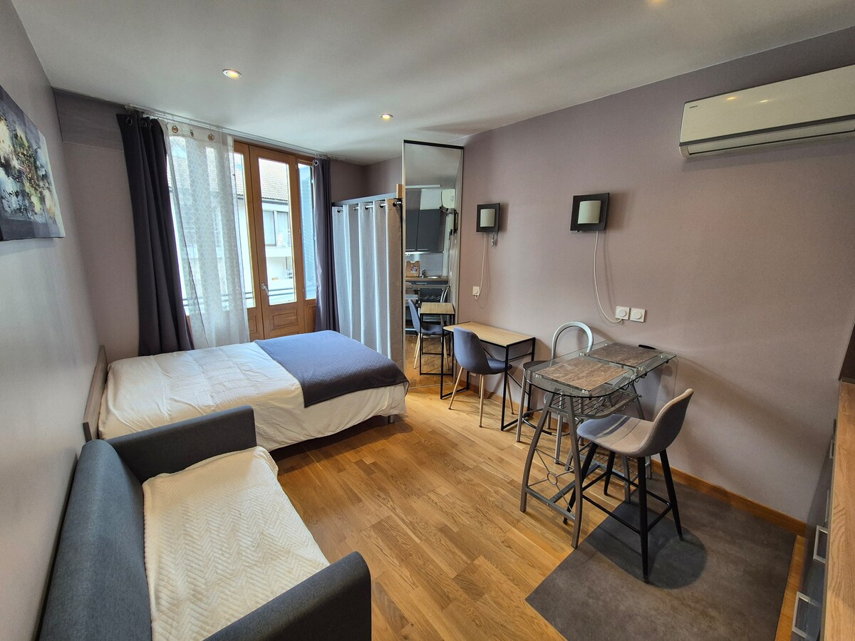 Á 5min à pieds de la gare, posez vos valises en plein cœur de la ville (stationnement difficile) dans ce petit studio (19m²) surplombant le canal. Au centre historique d'Annecy, vous ne serez qu'à quelques pas de son célèbre lac L'appartement - équipé Wifi - se compose d'un coin salon (clic-clac = couchage principal, table/chaises et armoire), d'un coin cuisine (frigo avec petit congélateur, plaques induction, hotte, four multi fonctions, lave-linge) et d'une salle d'eau avec douche & WC