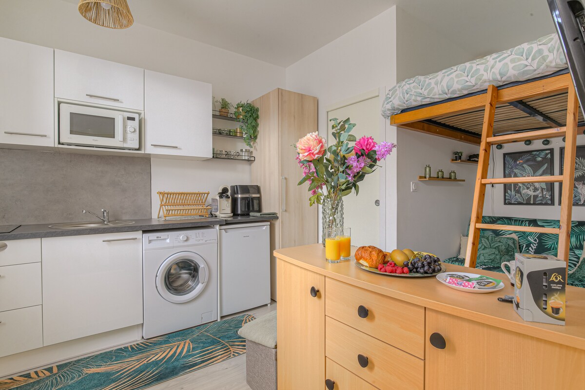 Վայելեք էլեգանտ և անկախ ստուդիա Վերանորոգված, ժամանակակից դիզայն, լուսավոր - Կլիմայական կոնտրոլ - Thentegrated Smeg խոհանոց - Լողասենյակ ցնցուղ - Smart TV 55 - Fiber - Samsung միկրոալիքային վառարան - Nespresso սրճեփներ, Dolce gusto - Տոստեր - ցերեկային մահճակալի թախտ - Սավանները, լոգարանի սրբիչները ներառված են - Iron և արդուկի տախտակ - Լվացքի մեքենա - Ապահով հեծանվային ավտոտնակ - Անվճար ավտոկայանատեղի - Գնացքի կայարանը 5 րոպե ոտքով: - Չանաս ավտոմայրուղու ելքը մեքենայով 5 րոպե: