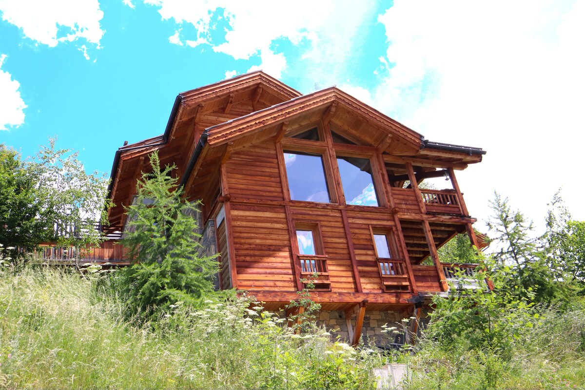Գտնվում է Ռեոտյե գյուղի բարձունքին, ծովի մակարդակից 1100մ բարձրության վրա: Դուք կգնահատեք այս 116մ ² փայտե շալեն ՝ տեսարանի և հարմարավետության համար: Այն կատարյալ է ընտանիքների համար (երեխաների հետ): Շալեն գտնվում է շատ հանգիստ միջավայրում: Դուք կունենաք հիասքանչ տեսարան դեպի Դուրանս հովիտը, Քվայրասի լեռները ՝ հազար արշավներով, Վարսերի և Ռիսուլի լեռնադահուկային հանգստավայրերը, Մոն - Դաֆինի Վաուբանի հենակետը (ՅՈՒՆԵՍԿՕ - ի կողմից նշված որպես Համաշխարհային ժառանգություն) և Գիլեստրե գյուղը: