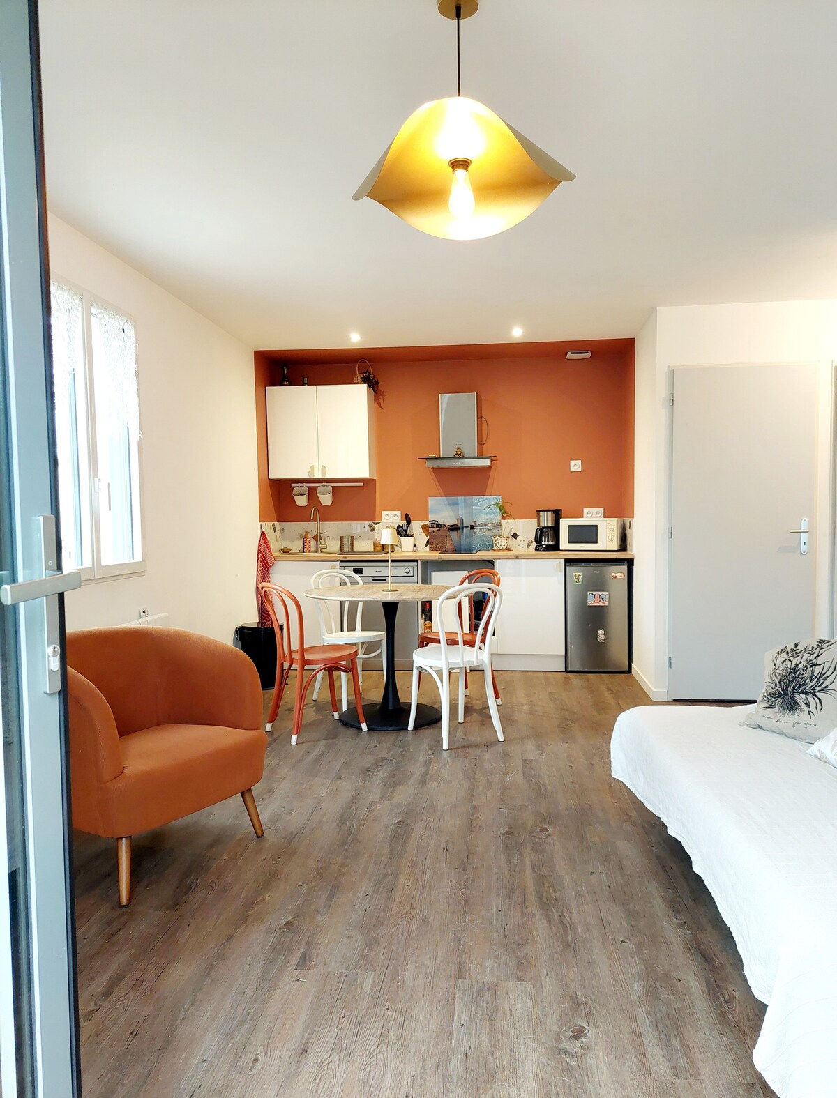 🌿 bienvenue au Matata - T2 neuf tout équipé avec terrasse et climatisation à Ciré-Daunis 🌿 Arrivé 17h00 départ 10h ( peu flexible pour des raison d’organisation) hébergement tout confort, situé à Ciré-Daunis, entre campagne et littoral. À proximité de La Rochelle, Rochefort et Châtelaillon-Plage, île de re c’est le point de départ parfait pour découvrir la régions Maison de plain-pied divisée en deux :