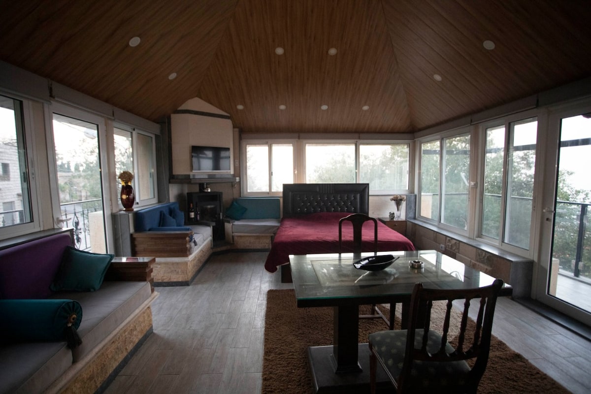 Chill & relax in this calm romantic getaway just 20 min from Beirut Int'l airport.Tower Watch offers balcony with breathtaking views over Beirut city & Sea where no worries we assist with A-Z on site as well as resto-pubs nearby as well as chill pub on site.Peace Trail between our Christian Village Shimlan's Biblical Garden & Muslim Keyfoun's Village Quran's Garden in addition to amazing unforgettable activities in the surrounding.Meals/Drinks/etc. ordered onsite HOTEL SERVE YET HOME FEEL&PRICE
