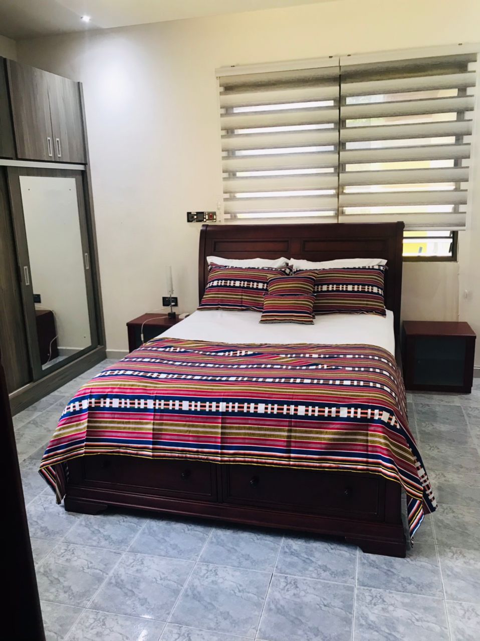 This peaceful and centrally located 1-bedroom apartment, just a 10-minute drive from the airport, is perfect for solo travelers or couples. It offers a comfortable bed, high-speed Wi-Fi, and a washing machine. No power worries there’s a reliable backup generator! Conveniently located for easy access to major attractions and amenities.