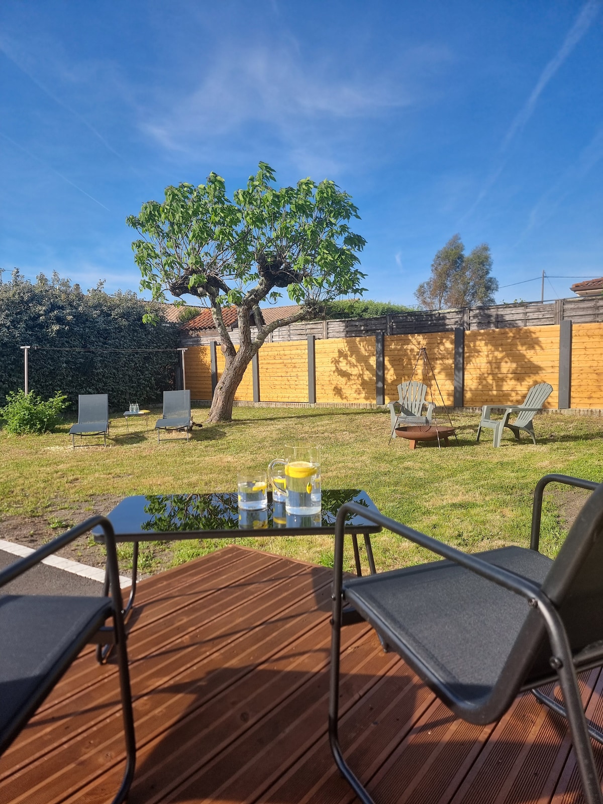 A l'Aiguillon ,au calme, proche du port, des plages , des commerces, de la piste cyclable, partie de villa avec sa propre terrasse et son jardin, comprenant entrée, cuisine, salle d'eau, living .A l'étage accessible par un escalier une chambre en mezzanine comprenant deux lits de 90 , une deuxième chambre avec un lit de 140. Les deux chambres sont basses de plafond. Le propriétaire habite sur place dans un logement touchant celui qui est loué. Annonce exclusive airbnb