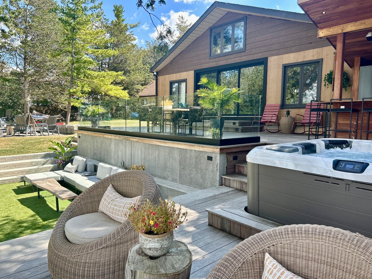 Warm up in the sauna! Get cozy by the fireplace! Rekindle romance under the bright stars! Hang with friends by the lakeside fire fit! Hike with your dogs! This much-loved 4-season cottage on a quiet private lake is spacious and chic, with upscale furnishings, a fireplace, and NEW SAUNA! Spectacular views, sunsets and stargazing — it's the ultimate Canadian cottage experience. It's even BETTER in the fall and winter. Listen for ice freezing! It's an incredible experience. Easy to find w/GPS